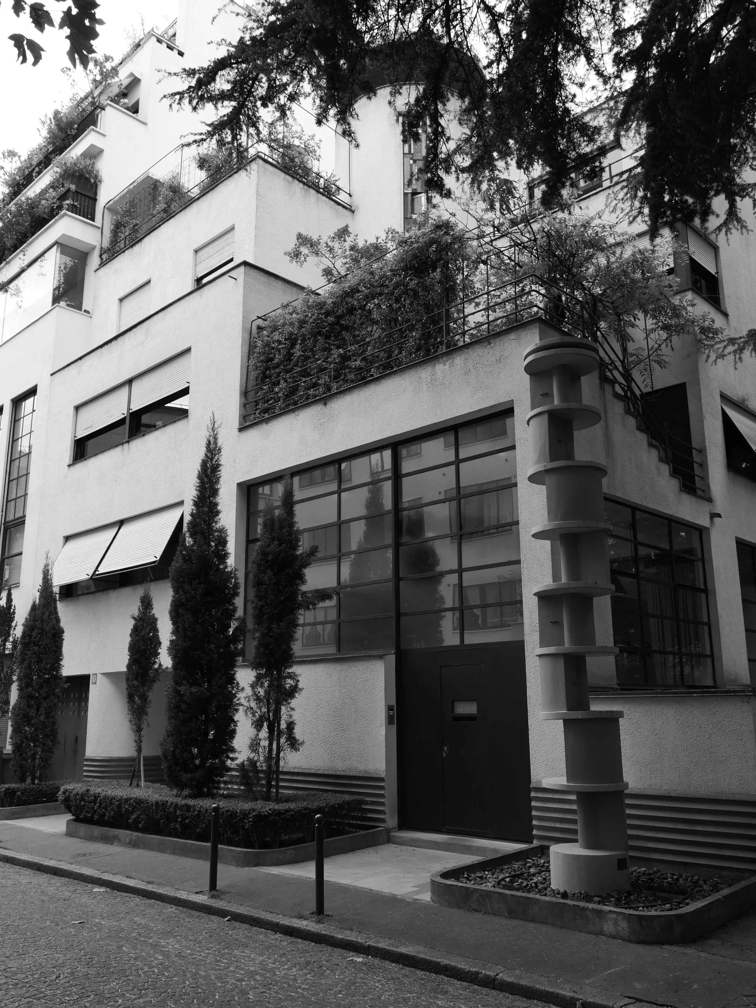 Visit to the Maison La Roche at Square du Docteur Blanche in May 2025. Three pictures of modernist homes Rue Mallet-Stevens.